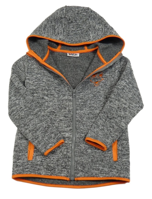 Tmavosivá melírovaná pletená prepínaci mikina s výšivkou a kapucňou Infinity Kids