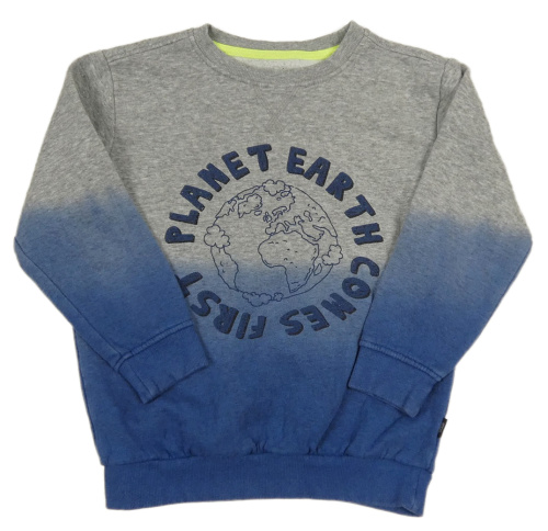 Sivo-modrá melírovaná mikina s nápisom a planetou