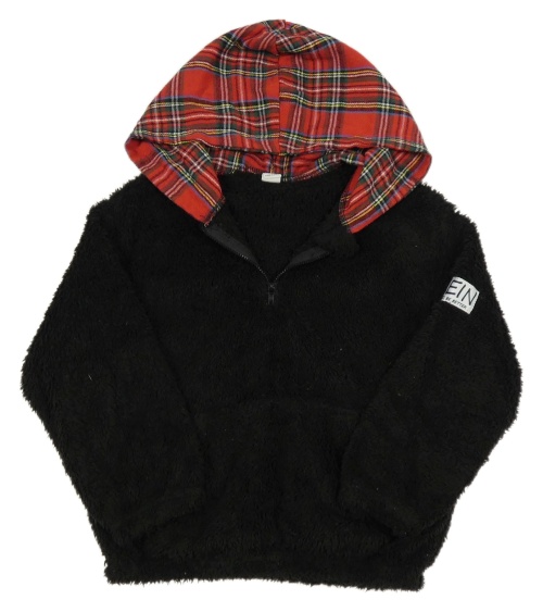 Čierno-červená chlpatá mikina s kockovanou košeľovou kapucňou Shein