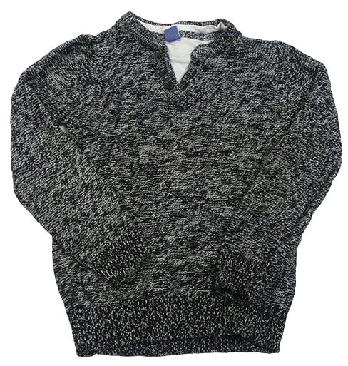 Čierno-biely melírovaný sveter s nášivkou a všitým trikem dopodopo