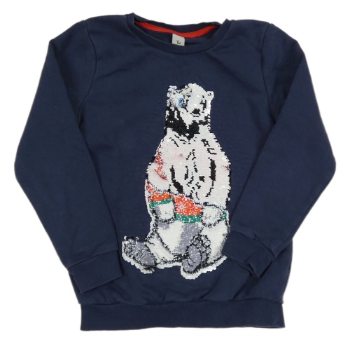 Tmavomodrá mikina s medvídkem z překlápěcích flitrů Tu