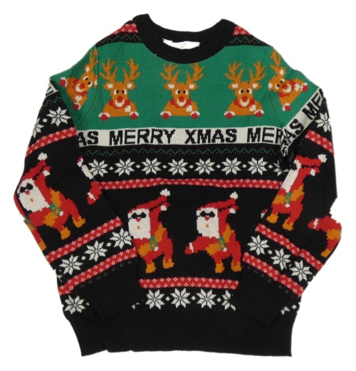 Čierno-zelený vzorovaný sveter so sobmi a Santy Peacocks