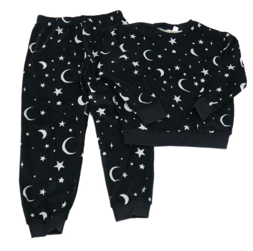 Čierne plyšové pyžama s hviezdami a mesiacmi