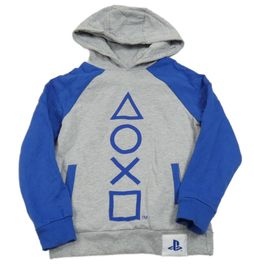 Sivo-modrá mikina so znakmi a kapucí - PlayStation