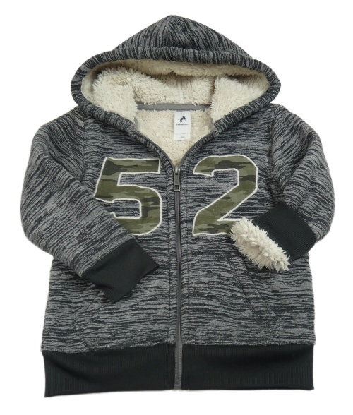 Sivo-čierna melírovaná fleecová prepínaci zateplená mikina s číslom a kapucňou C&A