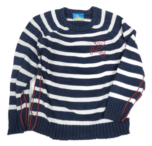 Tmavomodro-biely pruhovaný sveter s lebkou Topolino