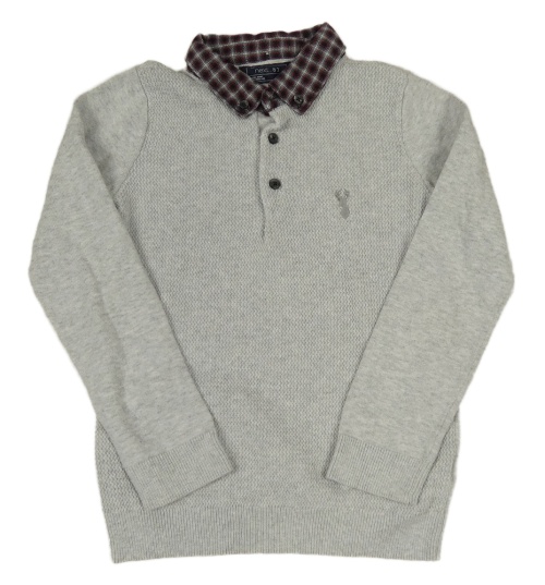 Sivý sveter s košeľovým golierikom a výšivkou Next
