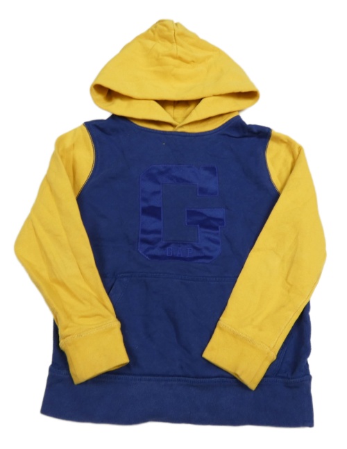 Tmavomodro-žltá mikina s písmenem a kapucňou GAP
