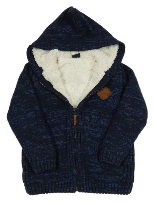 Čierno-modrý melírovaný zateplený prepínaci sveter s nášivkou a kapucňou LC Waikiki