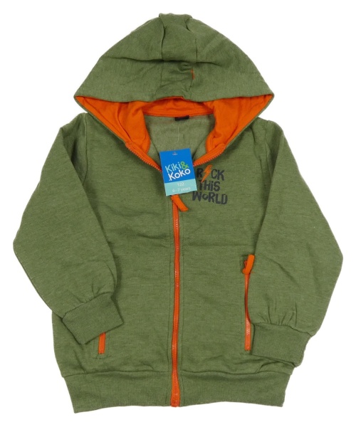Nové - khaki melírovaná prepínaci mikina s nápismi a bleskom a kapucňou Kiki&Koko