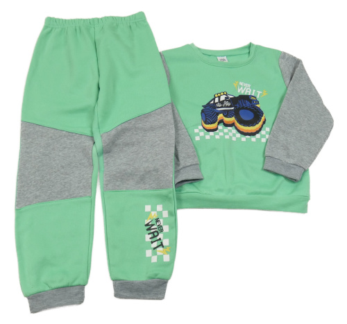 2set - Zeleno-sivá mikina s monster truck + tepláky Kiki&Koko