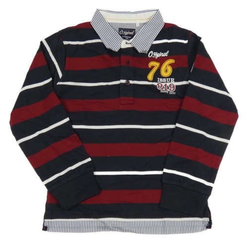 Nové - tmavomodro-vínovo-bílé pruhované mikinotriko s číslom a všitou košilí STOP+GO