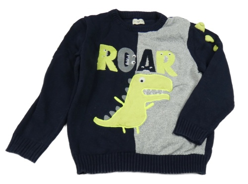Tmavomodro-sivý sveter s dinem a nápisom F&F