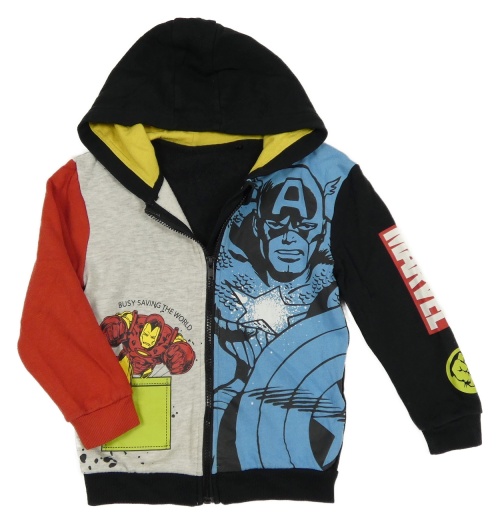 Čierno-modro-sivo-červená prepínaci mikina so Superhrdinami a kapucňou George