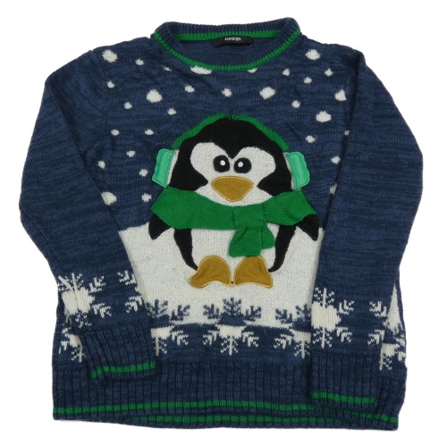 Tmavomodro-smetanovo-zelený sveter s tučňákem George