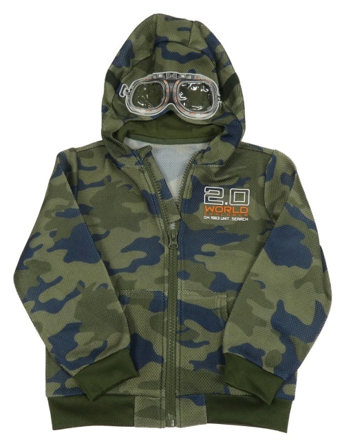 Kaki-modrá army thermo prepínaci mikina s okuliarmi a kapucňou