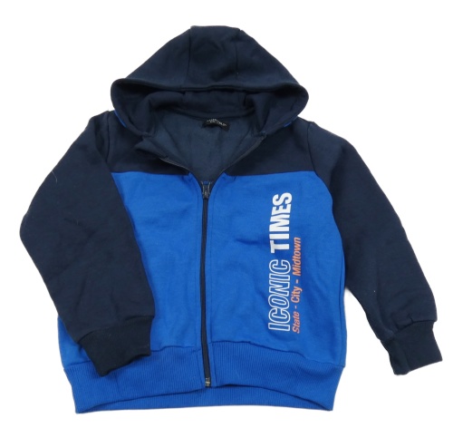 Cobaltovoě modro-tmavomodrá prepínaci mikina s nápismi a kapucňou TESSENTIALS
