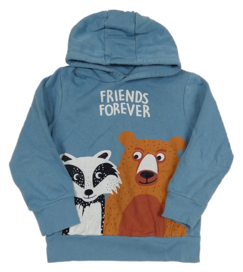 Modrošedá mikina s medvedíkom a mývalem a nápismi a kapucňou H&M