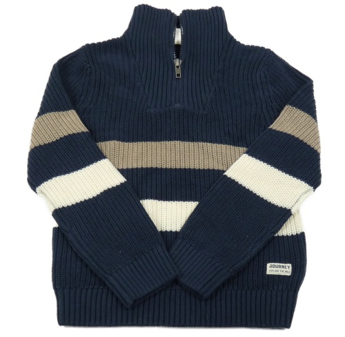 Tmavomodro-béžovo-biely pruhovanbý sveter s rolákom Topolino