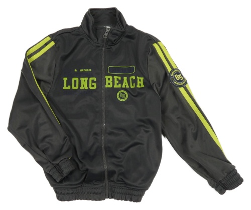 Tmavosivá športová prepínaci mikina s nápisom a pruhmi