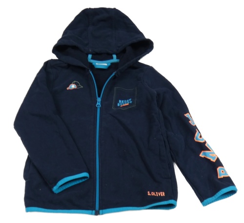 Tmavomodrá prepínaci mikina s nápismi a kapucňou S. Oliver