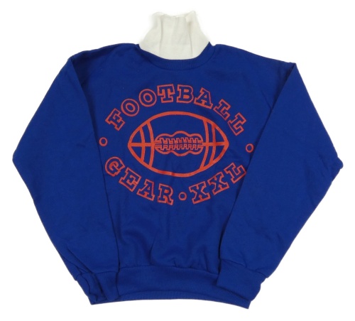 Modrá mikina s červeným potlačou a stojačikom