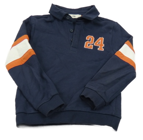 Tmavomodro-biela mikina s číslom a pruhmi a golierikom C&A
