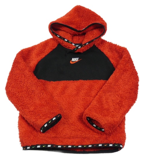 Červená chlpatá mikina s logom a kapucňou Nike