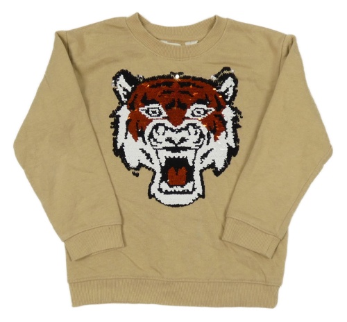 Béžová mikina s tygrem z překlápěcích flitrů H&M