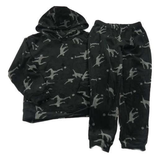 2set - Čierna plyšová mikina s postavami a kapucí + tepláky