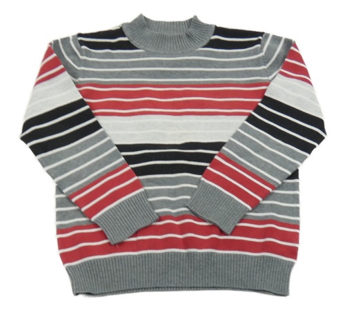 Sivo-červeno-biely pruhovaný sveter