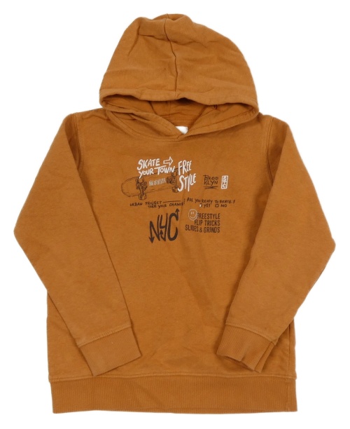 Medová mikina so skateboardom a nápismi a kapucňou STC