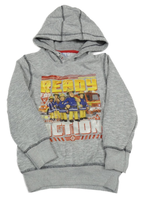 Sivá melírovaná mikina s Hasičem Samem a kapucňou