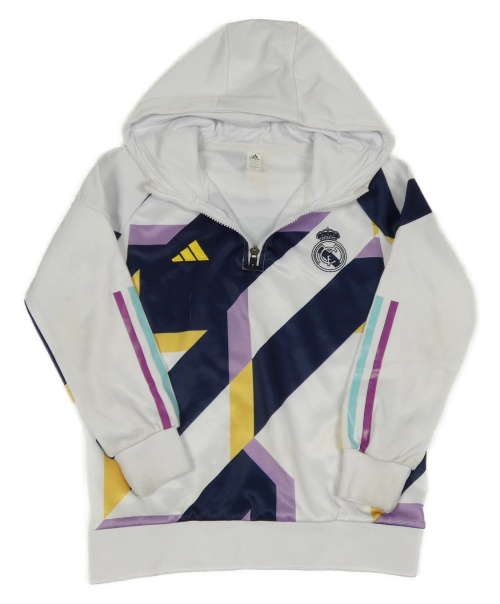 Bielo-tmavomodro-fialová futbalová mikina s kapucňou Adidas