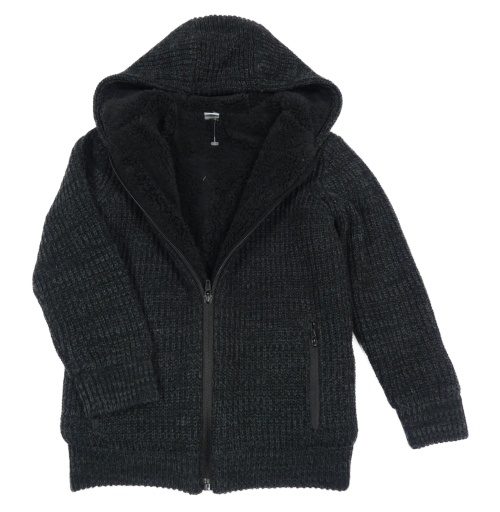 Čierno-sivý melírovaný zateplený prepínaci sveter s kapucňou TU