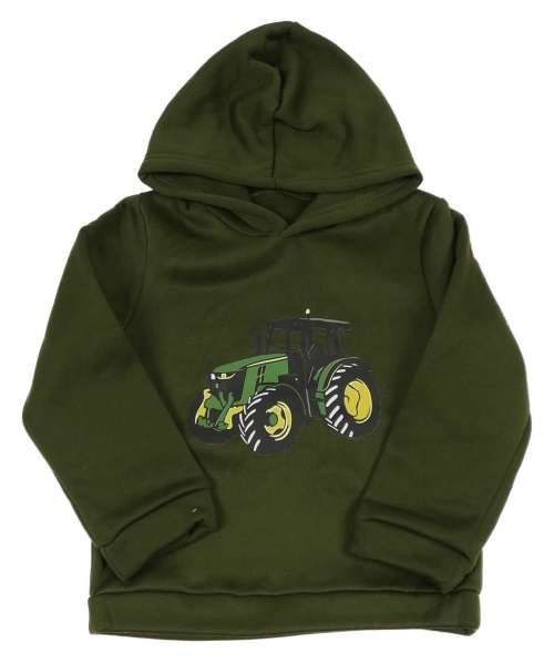 Khaki mikina s traktorom a kapucňou