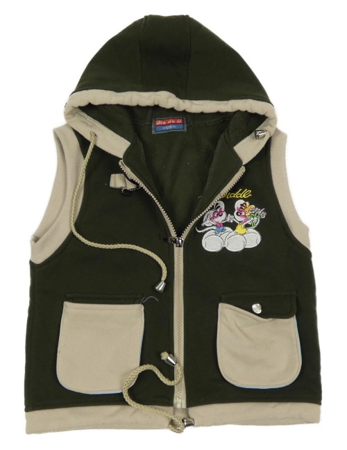 Kaki-béžová tepláková prepínaci vesta s myškami a kapucí - Diddl
