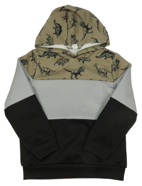 Kaki-sivo-čierna mikina s dinosaurami a kapucňou Shein