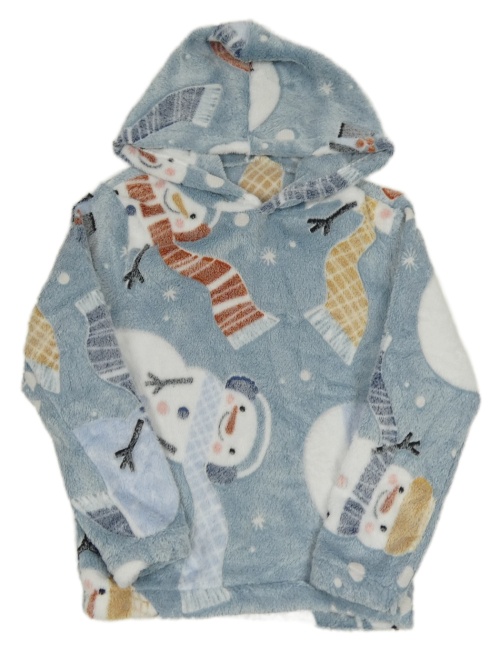 Modrá melírovaná chlpatá mikina so sněhuláky a kapucňou