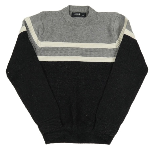 Čierno-sivý melírovaný úpletový sveter s pruhmi ETEN