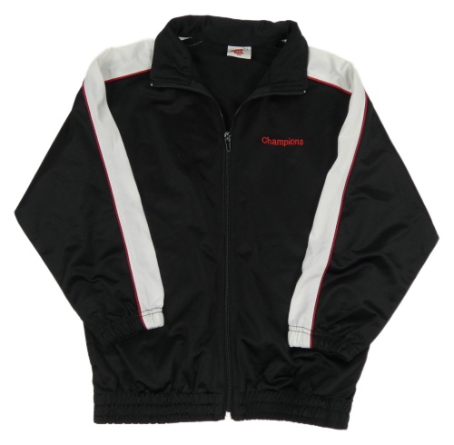 Čierno-biela prepínaci športová mikina s nápisom a pruhmi