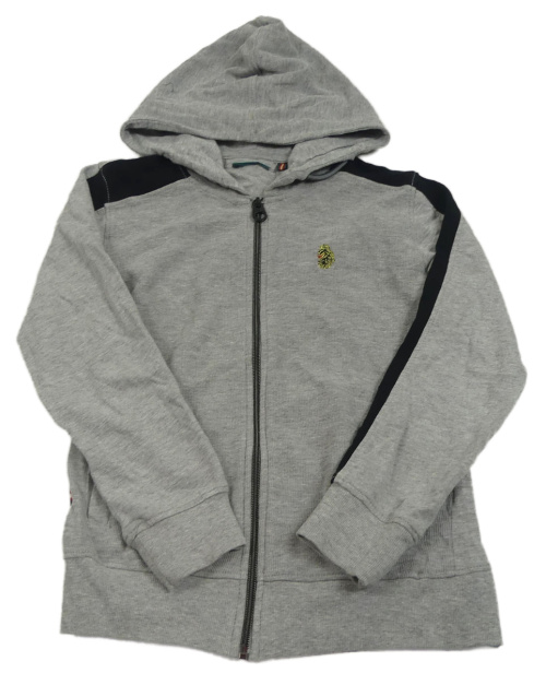 Sivo-čierna prepínaci mikina s nášivkou a kapucňou