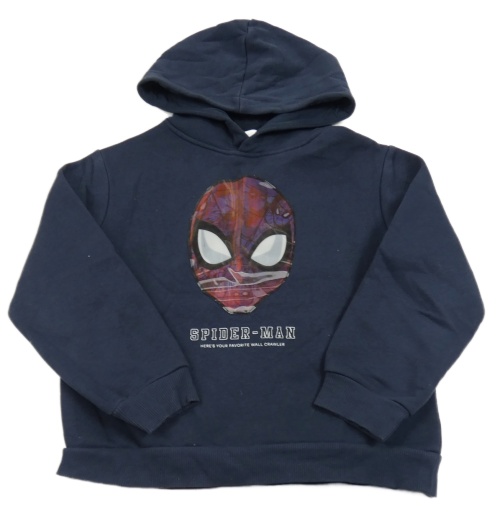 Tmavomodrá mikina so Spidermanem a kapucňou mango
