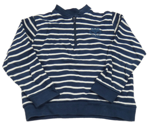 Tmavomodro-biela pruhovaná mikina s výšivkou