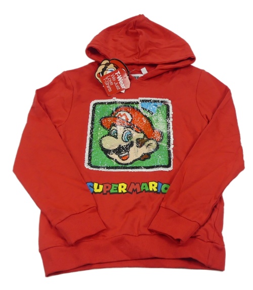 Nové - Červená mikina s Mariem z překlápěcích flitrů a kapucňou