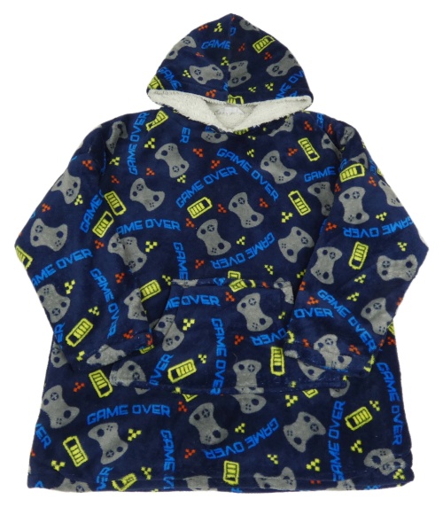 Tmavomodrá vzorovaná chlpatá zateplená domáceá mikina s ovladači a kapucňou