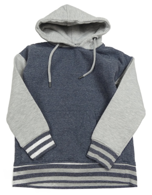 Tmavomodro-sivá melírovaná mikina s vreckom a pruhmi a kapucňou CITY COMFORT