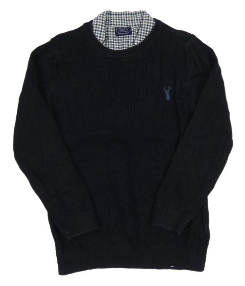 Tmavomodrý vzorovaný sveter so žebrováním a výšivkou a všitou košilí Next