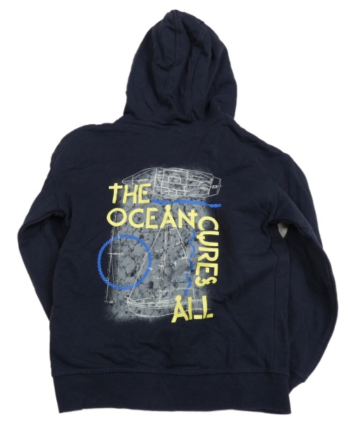 Tmavomodrá prepínaci mikina s potlačou a nápismi a kapucňou lupilu