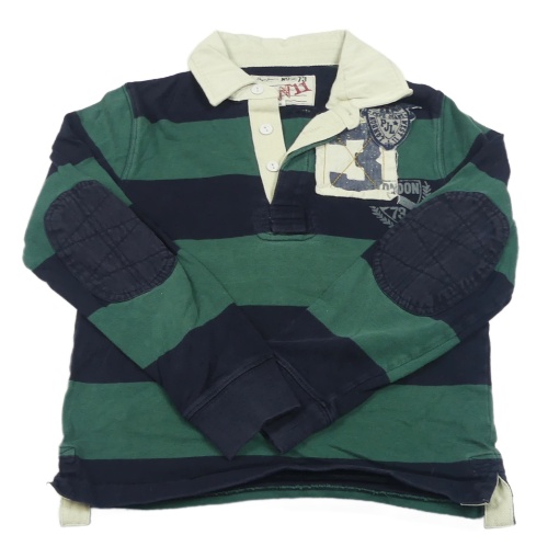 Tmavomodro-khaki pruhovaná mikina s číslami a nášivkou a golierikom Pepe Jeans
